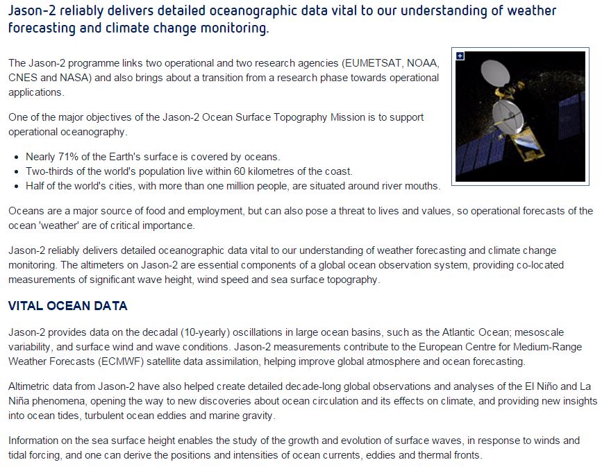 The JASON-2 program is managed by 2 agencies: EUMETSAT and NOAA.